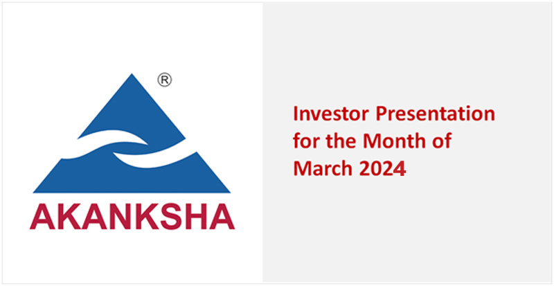 5 June 2025 -Akanksha Power And Infrastructure Limited, hereby submits the Update Investor Presentation for all our stakeholders of the company and public at large the Investor Presentation for the March 2025.Presentation have been prepared solely for information purposes and do not constitute any offer, recommendation or invitation to purchase or subscribe for any securities, and shall not form the basis or be relied upon in connection with any contract or binding commitment whatsoever.